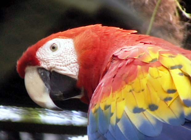 | It looks like the Egret is not the only bird on our tour. I present to you Charlie, a Scarlet Macaw, and also one of the friendliest animals at the Belize Zoo. He came to visit us when Antonio called him. Hi Charlie! |