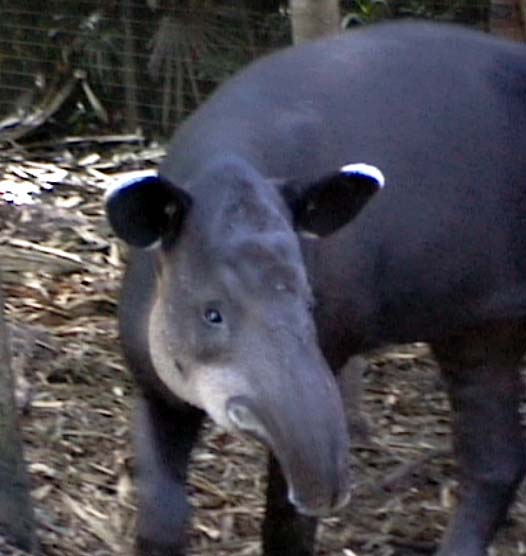 | You are now looking at one of the most fantastic creatures in the Belize Zoo. The Tapir is a very special animal. He is sometimes referred to as the Belize Cow and sometimes as a South American Pig. Since he cannot bend his neck, he keeps walking around in circles. Watch out! If you get too close, he may want to claim you as part of his territory, just like puppies and kittycats do. |