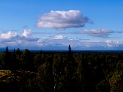 After we settled in, Laurie and I took a hike behind the lodge. This is the view of the Alaskan Range behind the hotel. These mountains we were seeing were so large that they looked awesome from sixty miles away. |