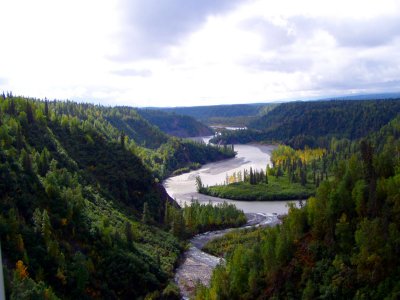 After returning to dry land, we boarded the lunch train for Talkeetna. On the way, we could see the Nenana River from above, along with miles and miles of awesome snow capped mountains painted with every color in God's palate. |