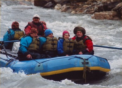 | Sunday, Laurie, Gail, Frank and I headed for the Nenana River, donned dry suits and entered a raft to brave the rapids of Nenana River Whitewater. Of course Steve did all the paddling, and we just enjoyed the ride. | ![]() |