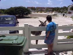 Beyond these sites, about 4 kilometers south of Kralendyk, you'll find Lighthouse Beach, three sets of row homes, perfect for the shore diver, one along the sea, one 100 yards back, and one surrounding a beautiful swimming pool. I have rented from owners 3 times in the past 10 years and never been disappointed. We love the land animals of Bonaire. Puppies played with us between dives on our last visit. A beautiful Persian cat, Oliver, shared our home during the day for two weeks in 1996. Lizards and lorakeets are all over, and never forget the everpresent donkeys, who own the road. Less than two miles north of Lighthouse Beach, you can rent tanks from the Flamingo and come and go as you please, never having to watch the clock for the next boat ride or lie about a crowded boat between the halves of a two tank dive. There are more wonders to come. Kralendyk, the capital of Bonaire, is a wonderful shopping and dining area, a huge triangle enclosing a parking area. Beyond Kralendyk are the great majority of dive hotels of Bonaire. At night, I like to avoid the rocks present along much of the shoreline. | ||||||||||||||||||||||||||||||||||||