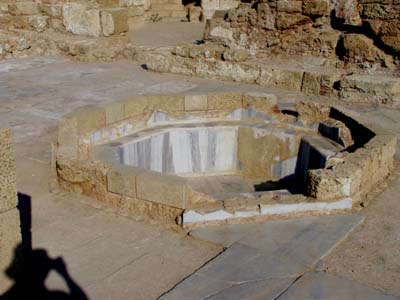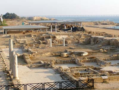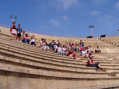 Tuesday morning after a nice swim in the Mediterranean we headed North eventually reaching Caesarea. After a nice lunch at a kibbutz kiosk outside the gates, we entered the National Park and spent a few hours marvelling over Herod's playground. The theatre was beautiful and in great shape. We listened as a young girl sang marvelling at the accoustics. The Colloseum was enormous. The reconstruction was moving along.