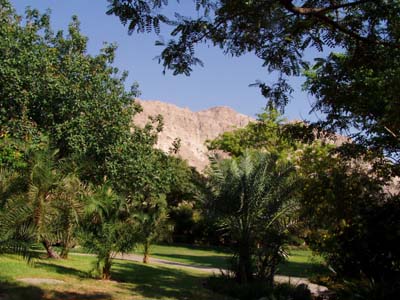 Shortly thereafter we pass Massada and continue north. Finally we see the sign, Ein Gedi Resort, except the Kipahed man at the gate tells us that this isn't the place. We continue 3 kilometers to the Ein Gedi Youth Hostel and find that isn't the place. We return and pass the Kipahed man continuing on to the Guest House.