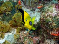 The final day we did three different dives. At six AM, we jumped in at Twin Knobs for a dawn dive. I have never experienced such a dark situation. I did see one Huge lobster hidden in a tunnel under the reef. After breakfast, Laurie and I dove Twin Knobs again. Though the silt was heavy, visibility was good near the reef, and life was abundant, including a large barracuda and a huge Southern Stingray that swam along with us. The final dive was a long drift at Buoy near the town of Bogueron. I saw the smallest, prettiest Queen Trigger ever on that dive. It was really calm and beautiful during the drift.